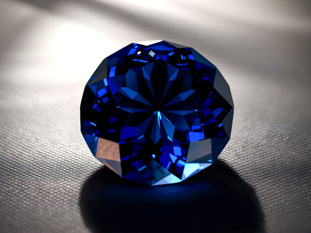 An exquisite blue gemstone rests gracefully on a non-reflective surface, illuminated by soft natural light. This image captures the intricate details and clarity, creating a striking contrast against a blurred bokeh background.