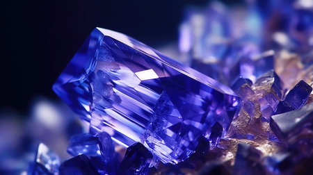 The extreme close-up dives into the radiant depths of a tanzanite. The surface is a symphony of blues and violets, its natural facets catching and refracting light in a mesmerizing display.