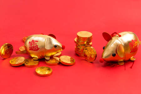 Gold Coins, Gold Ingots and Year of the Rat Mascot