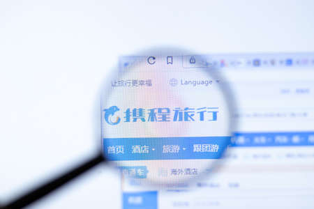 New York, USA - September 29, 2020: ctrip.com Ctrip company website with logo close up, Illustrative Editorial.