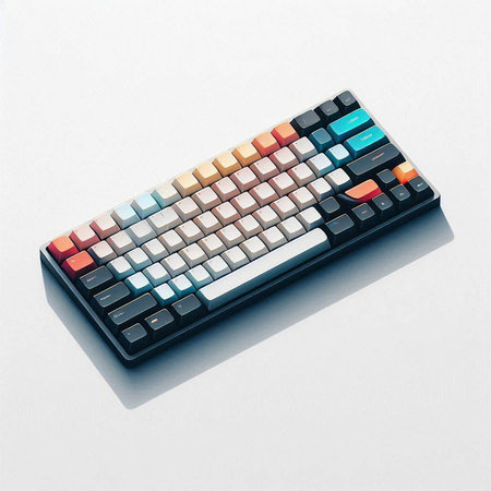 A macro shot of a futuristic gaming keyboard, its RGB lights casting a vibrant glow in the dark.