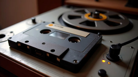 The vintage audio cassette tape, analog magnetic tape format for audio recording and playback.