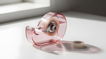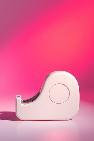 Enhance your workspace with this modern tape dispenser on a vibrant pink backdrop, ideal for organization and efficiency. Streamline your office today!