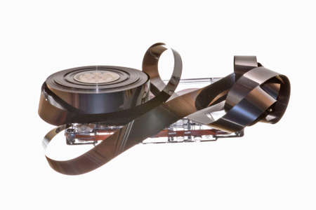 Cassette tape, object isolated on a white background, analog magnetic tape for audio recording, outdated technology
