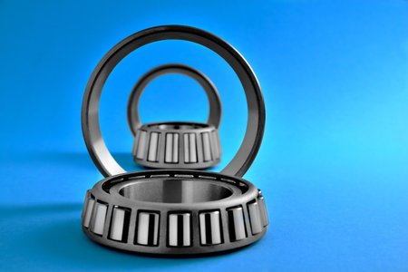 roller bearings on a blue background, your idea, close-up, blur as the author's idea, copy space