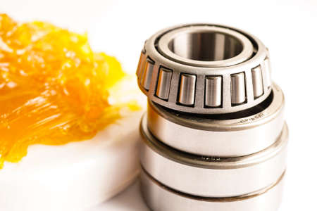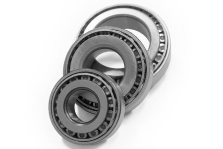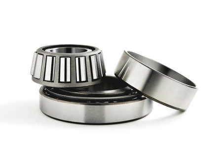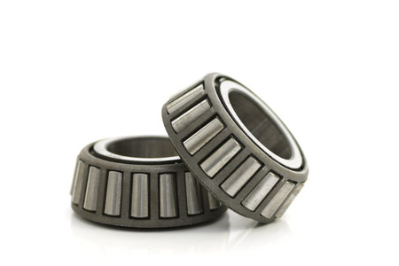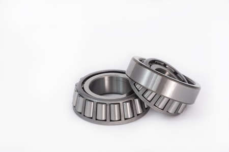 roller tapered bearings on white background for car and other mechanisms close-up selective focus
