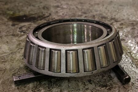 Close up scene the cylindrical rolling bearing parts. The heavy mechanical part manufacturing concept.
