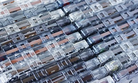 Picture of a retro, dusty, used, old cassettes tape from 70s 80s 90s. It reminds of the music history.