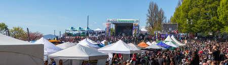 Downtown Vancouver, British Columbia, Canada - April 20, 2019: Crowd of people are gathered to celebrate 420 at Sunset Beach during a sunny day.