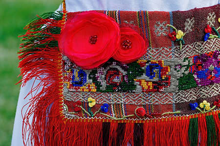 Details of a traditional colorful Lithuanian weave. Woven belts as a part of national Lithuanian costume sold on traditional Easter fair in Vilnius, Lithuania.