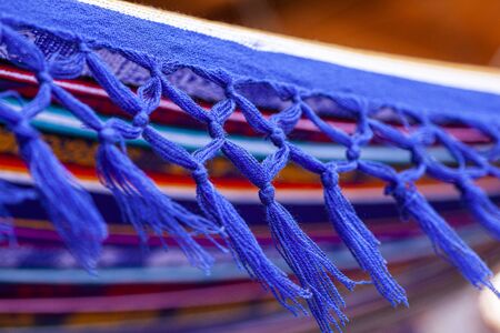 Fringes of blue fabric in a macro shoot detail