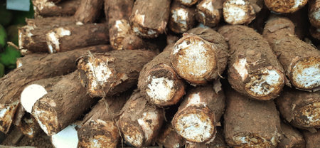 Fresh of pile Cassava background in Indonesia called as singkong or ketela or ubi kayu