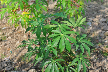 Tapioca Plants or Cassava leaves Growing in ranch.