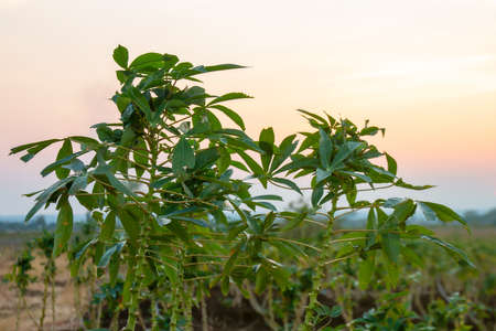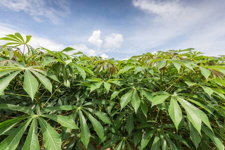 cassava tree and leaf, cassava or yucca fields, tapioca plantation for background