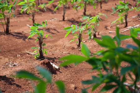 Cassava or manioc plant field - preparing young plant for the next crop.