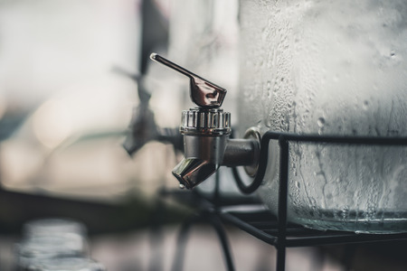 Service of drinking Cold water in glass tank. Vintage color tone.