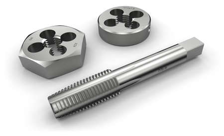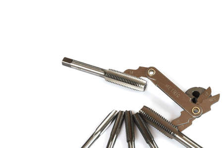 Mechanical hand tool set of screw tap and die cutting isolate on white background.