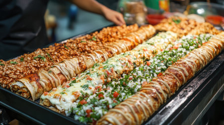 Delicious enchiladas displayed with colorful Mexican food buffet