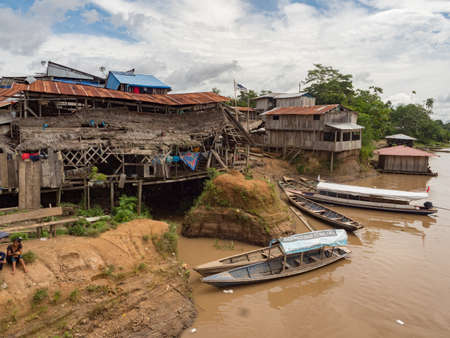 Amazon River, Peru - May, 2016: Small village on the bank of the Amazon River. Amazon. South America.
