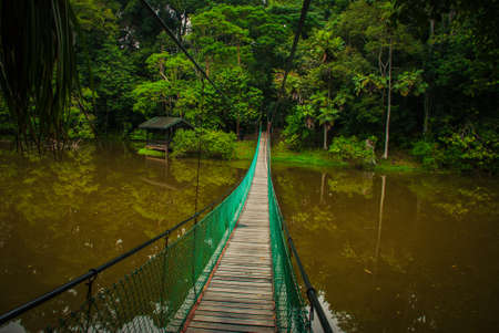 The suspension bridge over the lake in the summer, Borneo, Sabah Malaysia