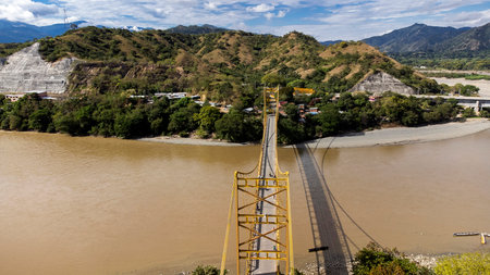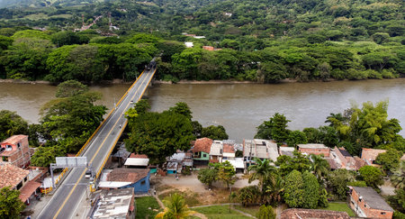 View of the Cauca River from the Cauca Bridge located at La Pintada in the Municipality of Aguadas at the department of Caldas in Colombia