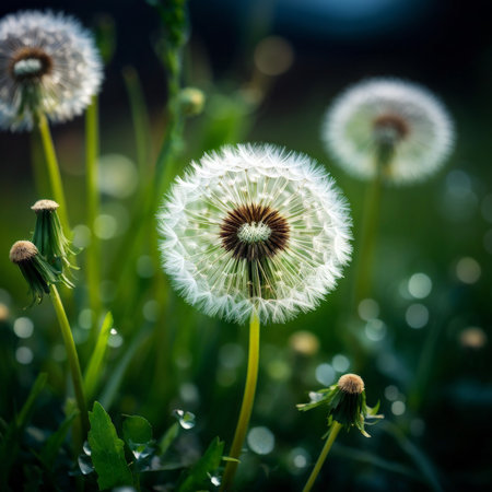 Soft dandelion seed blowing in summer wind generated by artificial intelligence