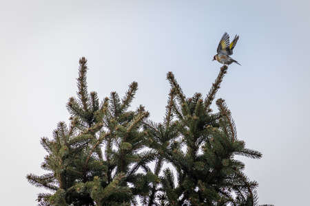 European goldfinch (Carduelis carduelis) in winter, Italy.