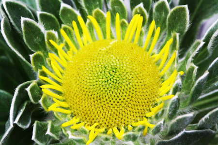Macro of beautiful romantic forest dreamy magic yellow flower with green leaves background. Toned with filters in retro vintage color. Soft selective focus and blurry floral nature background.