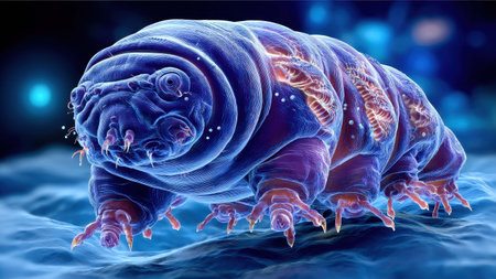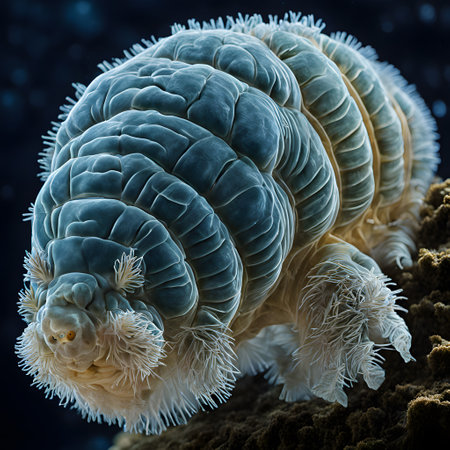 An extraordinary close-up of a tardigrade, showing the intricate details of this tiny but resilient micro-animal.