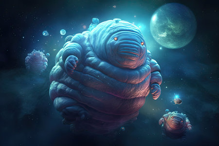 illustration of a funny concept of an astronaut steampunk tardigrade, generative ai