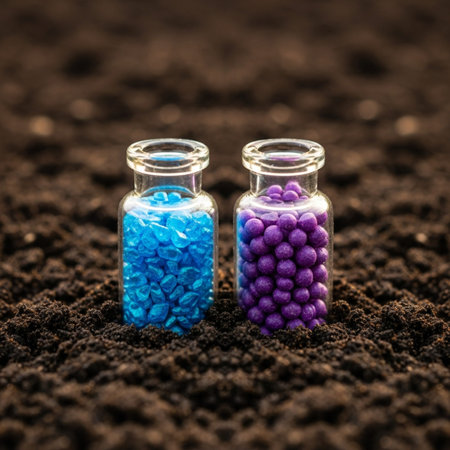 Close-up of hands cupping green plastic polymer pellets, symbolizing raw materials for manufacturing. Background features scattered pellets, emphasizing industrial production.