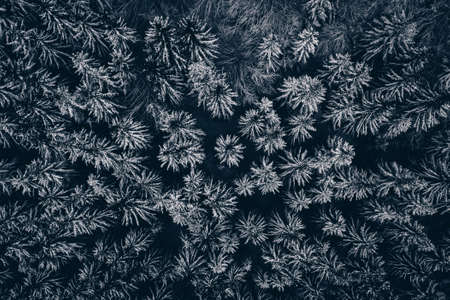 Forest covered in snow pattern background aerial view