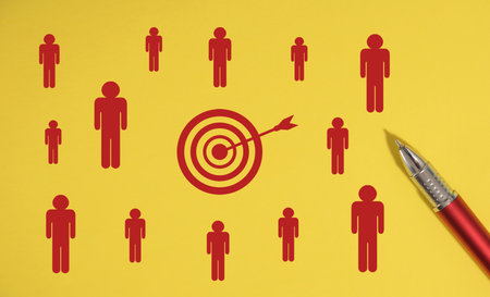 Customer target audience. Marketing segmentation. Target customer, Personalization marketing, customer centric strategies. Goal and target, success and business target concept, Human resources and CRM