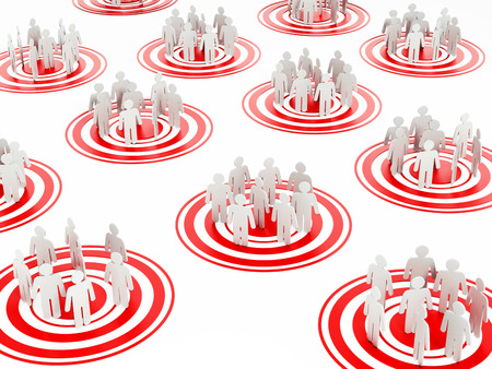 Customer target audience marketing strategy. Social media user marketing. People icon target group and aiming. 3d rendering