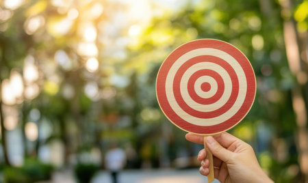 Hand holding a target board, symbolizing business strategy and future sustainable finance action plans, set against a creative background with ample copy space.