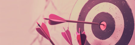 A visually striking close-up of three pink arrows perfectly hitting the center of a dartboard, showcasing themes of precision, focus, and success in competitive games.