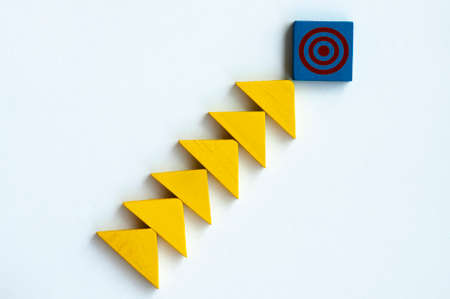 Triangles shape and target symbols on wooden blocks. Goal setting in business concept.
