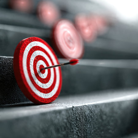 Red arrow at the center of dart board background