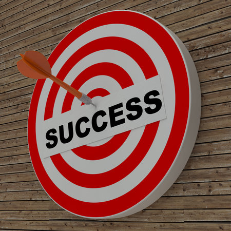 Red and white target with a dart perfectly hitting the bull's eye, concept of accuracy and achieving the goal.