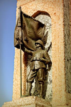 Canakkale, Turkey / May 26, 2019: Mustafa Kemal Ataturk and Turkish Army Statues in The Canakkale Martyrs Memorial.