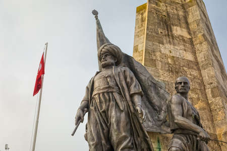 Marmaris, Turkey - May 01, 2022 - Monument to Ataturk in the center of the resort town of Turkey Marmaris