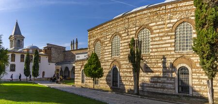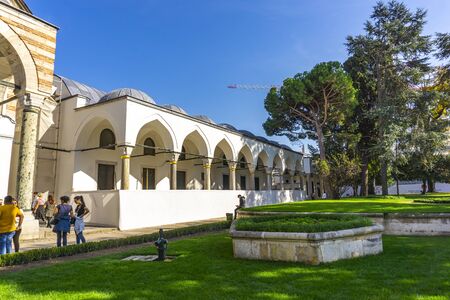 ISTANBUL, TURKEY - NOVEMBER 10, 2019: Unidentified people at courtyard in Topkapi Palace in Istanbul, Turkey. In the 15th century, Topkapi Palace served as the main residence of the Ottoman sultans