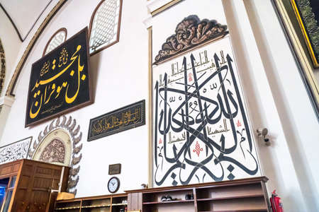 BURSA, TURKEY - SEPTEMBER 02, 2018 : Interior view of Ulu Camii (Grand Mosque) in Osmangazi, Bursa. Mosque is largest mosque and has art calligraphic writings.