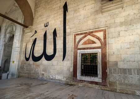 EDIRNE - TURKEY, JULY 12: Calligraphy on a wall of Old Mosque from in Edirne on july 12, 2016. The Old Mosque is an early 15th century Ottoman mosque in Edirne, Turkey