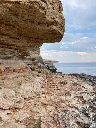 Rocky cliffs in Tarkhankut Peninsula. Black sea, Crimea