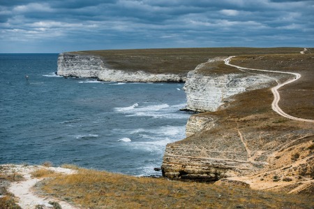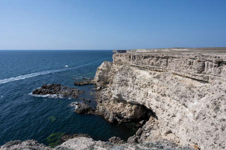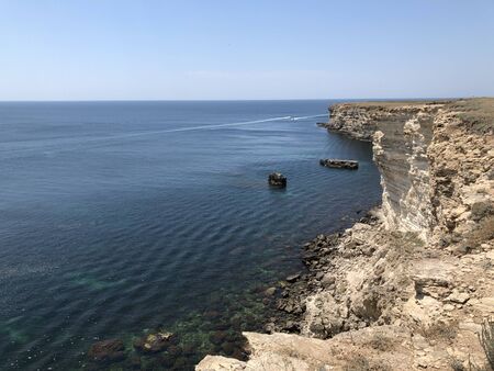 Tarkhankut Peninsula, Black sea, Crimea. Rocky cliffs and sea views. Beautiful views of Crimea.