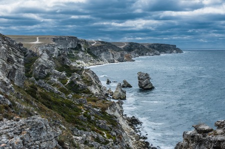 View of the seascape at Cape Tarkhankut in the Crimea.