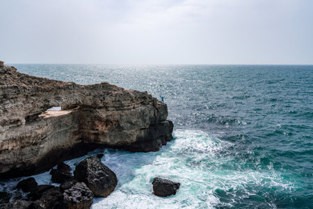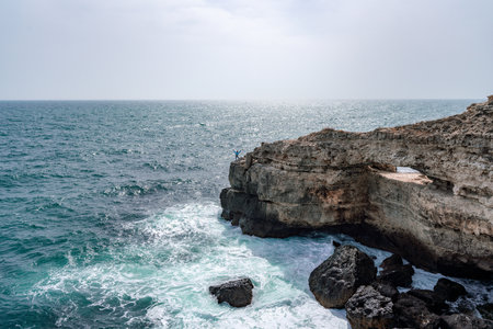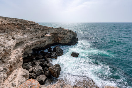 Breaking waves on the rocky coast of the Black Sea at Tyulenovo, Bulgaria