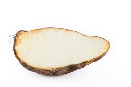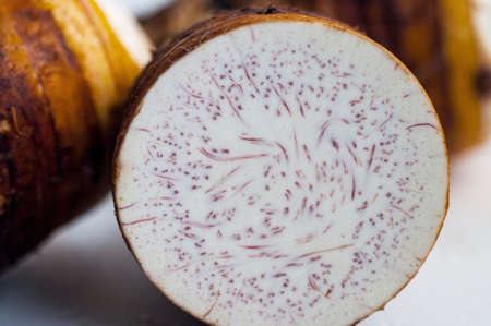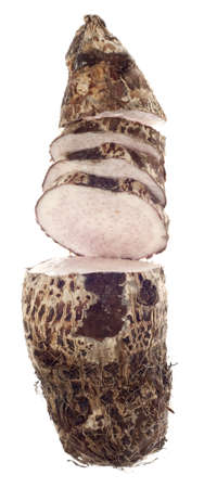 Closeup photo of Taro root vegetable isolated on a white background