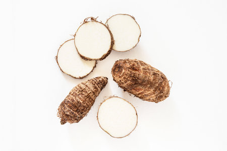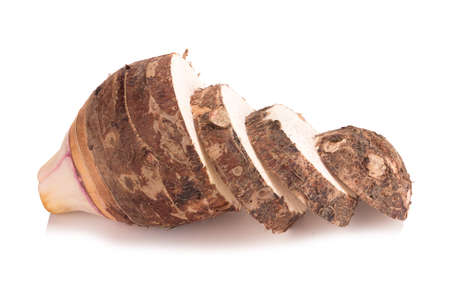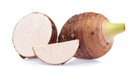 Taro or Colocasia esculenta and slice isolated on white background with clipping path.